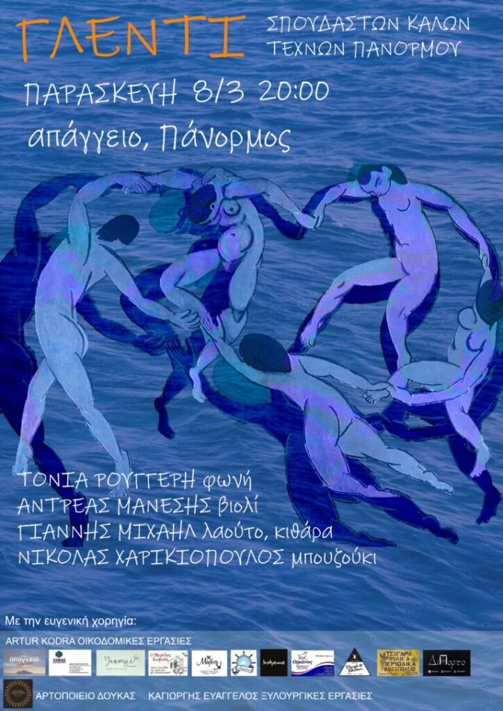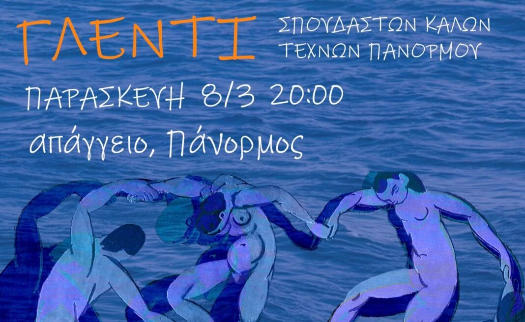 Οι σπουδαστές της Σχολής Καλών Τεχνών Πανόρμου Τήνου σας προσκαλούν την Παρασκευή 8 Μάρτη στο Απάγγειο, στον Πάνορμο να γλεντήσουμε όλοι μαζί!