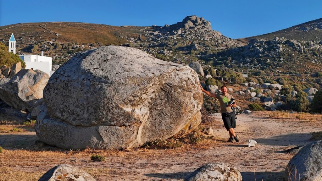 Το επεισόδιο ολοκληρώνεται με ανάβαση στον εντυπωσιακό βράχο του #Εξώμβουργου. Μια εντυπωσιακή τοποθεσία που δεσπόζει στο κέντρο του νησιού και προσφέρει πανοραμική θέα σε όλη την Τήνο.