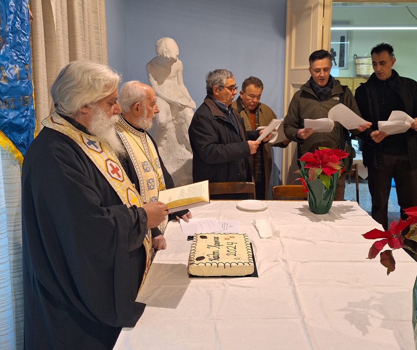 Όλοι μαζί συγκεντρωμένοι έψαλλαν τα πρωτοχρονιάτικα κάλαντα όπως τα ακούγαμε από τους γονείς μας τις γιορτινές αυτές μέρες.