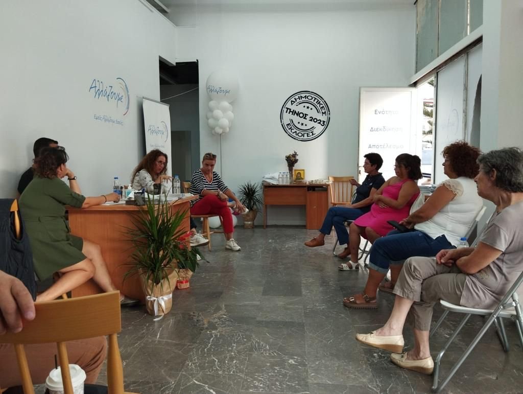 Επιπλέον, η επικεφαλής του Συνδυασμού, Αναστασία Ψάλτη, ανέλυσε τη στρατηγική των ΑΛΛΑΖΟΥΜΕ για το μέλλον του νησιού μας και, ιδιαίτερα, τους τρεις βασικούς της άξονες: