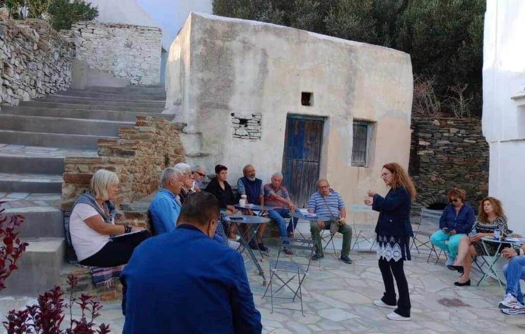 Η συνάντηση πραγματοποιήθηκε στο καφενείο του χωριού και οργανώθηκε στο πλαίσιο της πρωτοβουλίας #ΣΥΖΗΤΑΜΕ του Συνδυασμού, που έχει στόχο να επισκεφθεί όλους τους οικισμούς της Τήνου και να συνομιλήσει με τους πολίτες του νησιού.