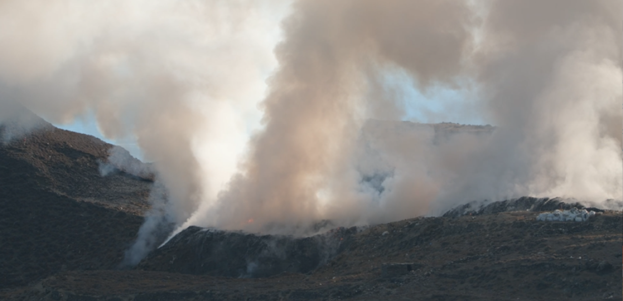Η πρώτη σκέψη τους ήταν ότι στο νησί έχει εκδηλωθεί πυρκαγιά. Μόνο που αμέσως κατάλαβαν ότι οι πυκνοί καπνοί που σκέπασαν την Τήνο, η αποπνικτική μυρωδιά, ήταν από την ανοιχτή, ανεξέλεγκτη χωματερή όπου καίγονται τα σκουπίδια.