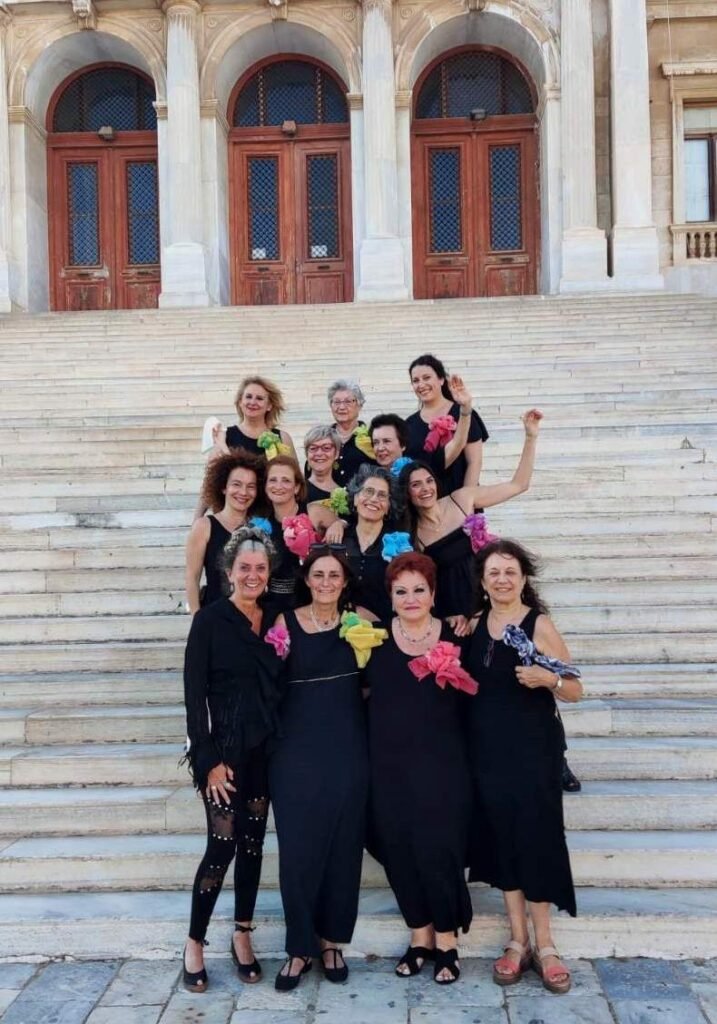 Η Χορωδία του Συλλόγου Φιλόμουσων Τήνου είχε την τύχη να συμμετέχει σ’ αυτή τη γιορτή χορού, ήχων και χρωμάτων. Μετά από μία τόσο εντυπωσιακή όσο και συγκινητική παρέλαση των χορευτικών ομάδων μέσα στην Ερμούπολη, όλοι συγκεντρώθηκαν στην πλατεία Μιαούλη. Μετά τους σχετικούς χαιρετισμούς, την εκδήλωση άνοιξε η χορωδία μας με τρία παραδοσιακά τραγούδια της Ηπείρου, του Πόντου και της Κ. Ιταλίας. Στη συνέχεια, οι χορευτικοί όμιλοι, συνοδευόμενοι από την παραδοσιακή ορχήστρα «Χοροσταλίτες», μάς χάρισαν τραγούδια και χορούς από διάφορα σημεία της Ελλάδας, αλλά και απ’ όπου αλλού χτυπάει η ελληνική καρδιά.