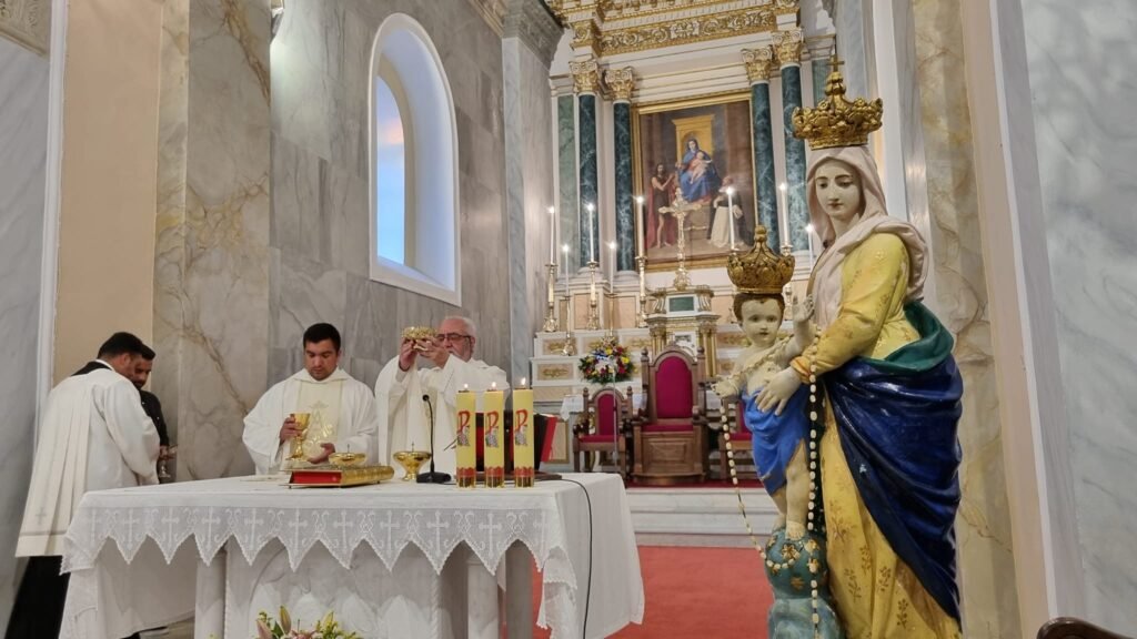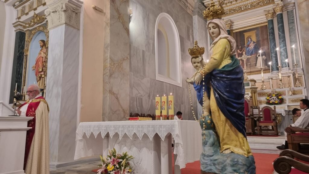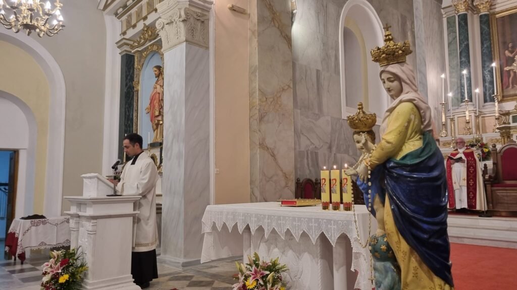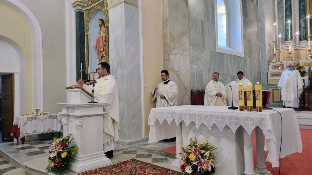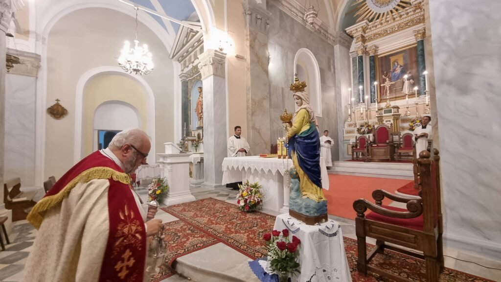 Την Κυριακή 1 Οκτωβρίου λοιπόν, τελέστηκε όπως κάθε χρόνο η Θεία Λειτουργία από τον βικάριο π. Μάρκο Φωσκολο, λόγω της απουσίας του σεβ/του αρχιεπισκόπου π. Ιωσήφ στο εξωτερικό.