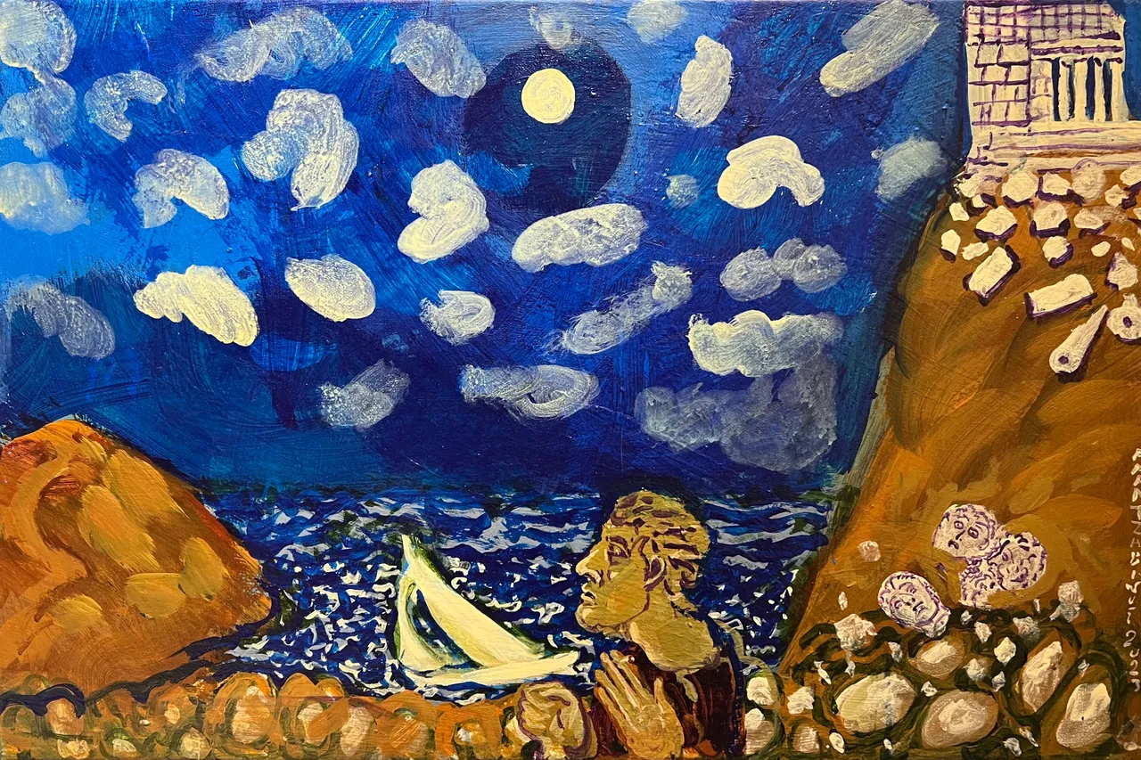 Εμφατικά γραμμένοι οι τίτλοι «ο ύπνος του Ίκαρου πριν την πτήση», «ύπνος στην ακτή» φανερώνουν τη λειτουργία του ύπνου ως πράξη τελεστική για την πτήση του Ίκαρου που παριστάνεται μόνος, ποτέ μαζί με τον πατέρα του, τον Δαίδαλο. Το πέταγμα είναι όπως η πρώτη ασυνείδητη κίνηση του χεριού στο τελάρο. Απαιτεί ερήμωση για να φτάσει στον προορισμό της. Μια προετοιμασία που απαιτεί άσκηση εσωστρέφειας, παρόμοια με τη ζωγραφική πράξη.