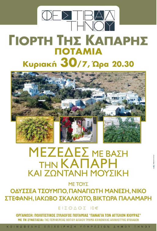 Την Κυριακή 30 Ιουλίου 2023 θα πραγματοποιηθεί η Γιορτή της Κάπαρης στην Ποταμιά Τήνου