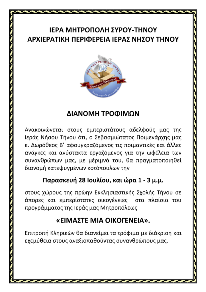Ιεράς Νήσου Τήνου ότι, ο Σεβασμιώτατος Ποιμενάρχης μας