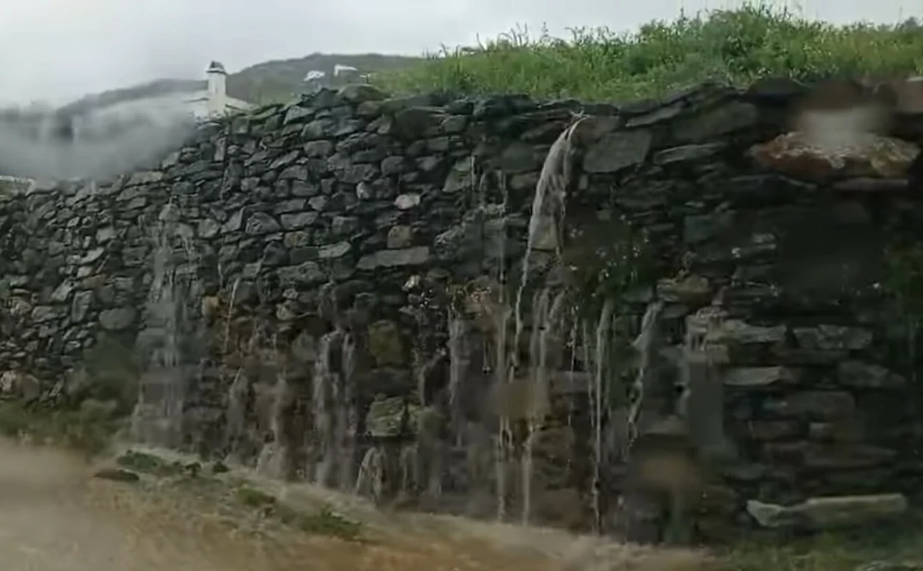 Η ίδια έντονη βροχή έπεσε και στην Τήνο, χωρίς να προκαλέσει τα ανάλογα προβλήματα. Αντιθέτως έδωσε την ευκαιρία σε μέλη του Πολιτιστικού και Περιβαλλοντικού Συλλόγου Τήνου «Αμπασάδα» να ανεβάσουν στο διαδίκτυο ένα βίντεο το όποιο έδειχνε τη λειτουργία μιας ξερολιθιάς τη στιγμή που επιτελούσε έναν από του κύριους ρόλους της, έκοβε την ορμή της πλημμύρας, φιλτράριζε τα νερά και τα οδηγούσε ήμερα στο δρόμο τους…