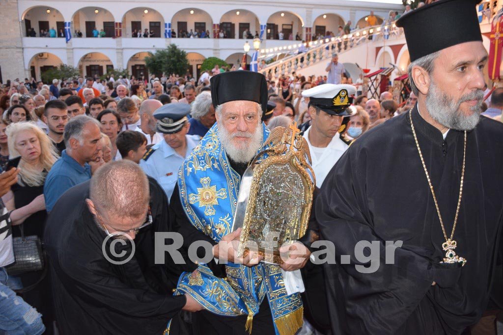 Με την συμμετοχή πλήθους πιστών τελέσθηκε απόψε αρχικά ο εσπερινός στον Ιερό Ναό Ευαγγελιστρίας Τήνου και εν συνεχεία με απόλυτη εκκλησιαστική τάξη, πραγματοποιηθείσης λιτάνευσης της Αγίας Εικόνος από τον Ιερό Ναό, στον αύλειο χώρο προ του Ναού της Ευρέσεως, όπου προ ευπρεπισμένης εξέδρας, τελέσθηκε η ακολουθία της Μεγάλης Παρακλήσεως με την συμμετοχή των Εφημερίων και των Διακόνων του Ναού, όπως και παρεπιδημούντων Κληρικών.