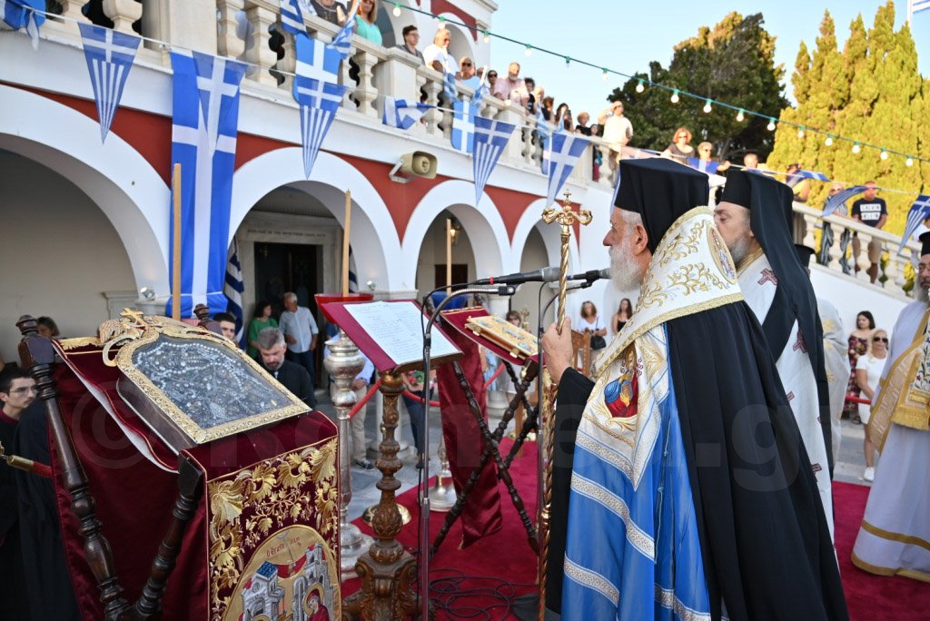 Χοροστατούντος του Σεβασμιωτάτου Μητροπολίτου Σύρου και Τήνου κ. Δωροθέου Β’ συμπαραστατουμένου από τους Εφημερίους του Ιδρύματος της Ευαγγελιστρίας και παρεπιδημούντες και με την συμμετοχή της Αντιπεριφερειάρχης Υγείας και Κοινωνικής Μέριμνας και Επάρχου Τήνου, του Δημάρχου Τήνου, του Αντιπροέδρου και μελών της Διοικούσης Επιτροπής του ΠΙΙΕΤ, των Διοικητών των Σωμάτων Ασφαλείας, του Προέδρου της Αδελφότητος εν Αθήναις Τηνίων, Δημοτικών και Περιφερειακών Συμβούλων και πλήθους πιστών, Τηνίων και προσκυνητών τελέσθηκε η Μεγάλη Παράκληση προς την Υπεραγία Θεοτόκο.