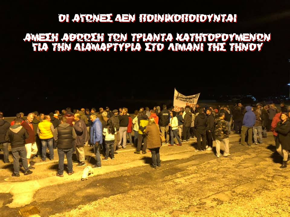 Τριάντα Τηνιακοί κατηγορούνται για παράνομη βία κατ’ εξακολούθηση, γιατί θέλησαν να προστατέψουν το νησί τους.
