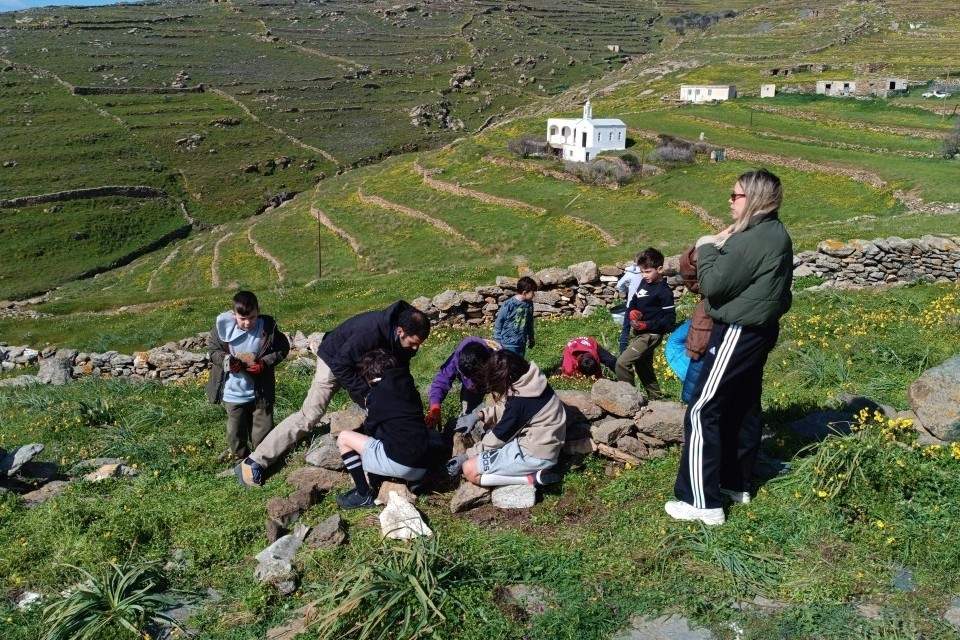 Την Πέμπτη 26/2/2026 πραγματοποιήθηκε ακόμα ένα εργαστήριο Ξερολιθιάς της Αμπασάδας στα πλαίσια του «Έτος ξερολιθιάς 2025-2026» που είναι σε εξέλιξη. Συγκεκριμένα επισκεφθήκαμε το 1ο Δημοτικό Σχολείο του νησιού μας όπου πραγματοποιήσαμε θεωρητικό μάθημα σε 2 τάξεις (αναγνώριση εργαλείων, συνοπτικό τρόπο δόμησης και τεχνικές ορολογίες), ενώ μετά το μάθημα κάναμε μια σύντομη πεζοπορία μέχρι την περιοχή Τυρί, όπου τα παιδιά χωρίστηκαν σε ομάδες και επισκεύασαν μικρές βουλίστρες.