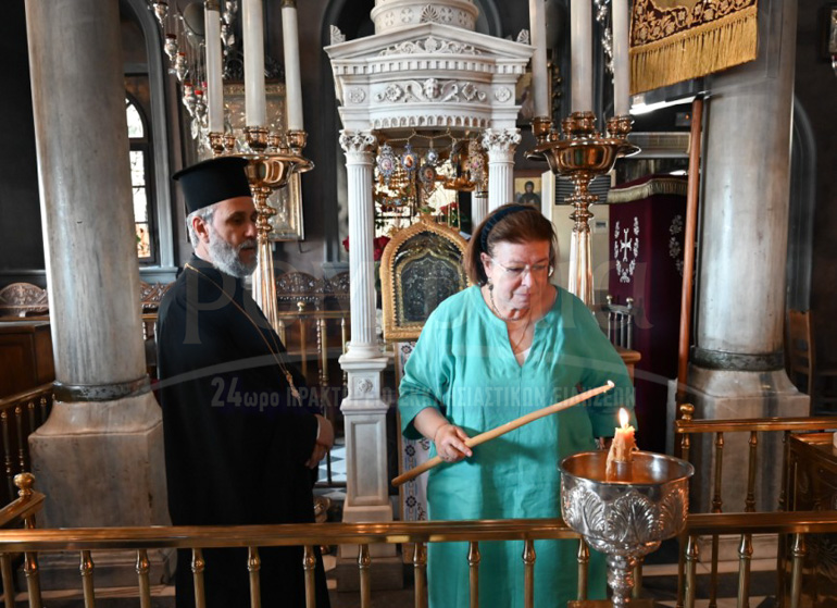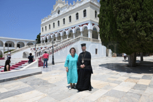 Εκ μέρους του Σεβασμιωτάτου Μητροπολίτου Σύρου και Τήνου κ. Δωροθέου Β’, ο Αρχιερατικός Επίτροπος της Ιεράς νήσου Τήνου ευχαρίστησε την Υπουργό Πολιτισμού για την προσκυνηματική επίσκεψή και της ευχήθηκε καλή επιτυχία στην αποστολή της.