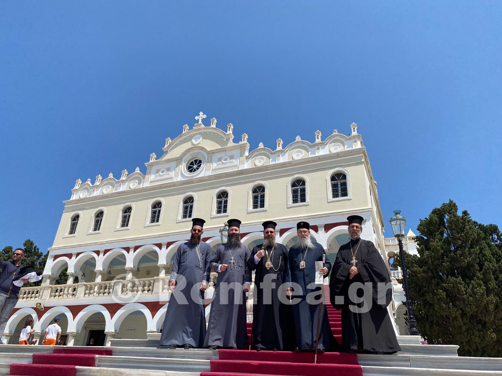 Ο Σεβασμιώτατος Μητροπολίτης Σύρου – Τήνου κ. Δωρόθεος Β’ καλωσόρισε εγκαρδίως και με περισσή αδελφική αγάπη στον λιμένα της Τήνου τον Σεβασμιώτατο Μητροπολίτη Κορίνθου κ. Διονύσιο καθώς και τον Θεοφιλέστατο Επίσκοπο Λευκουπόλεως (εκκλησία Βουλγαρίας) κ. Πολύκαρπο με τις τιμίες συνοδείες τους και τους ευλαβείς προσκυνητές από τις επαρχίες τους.