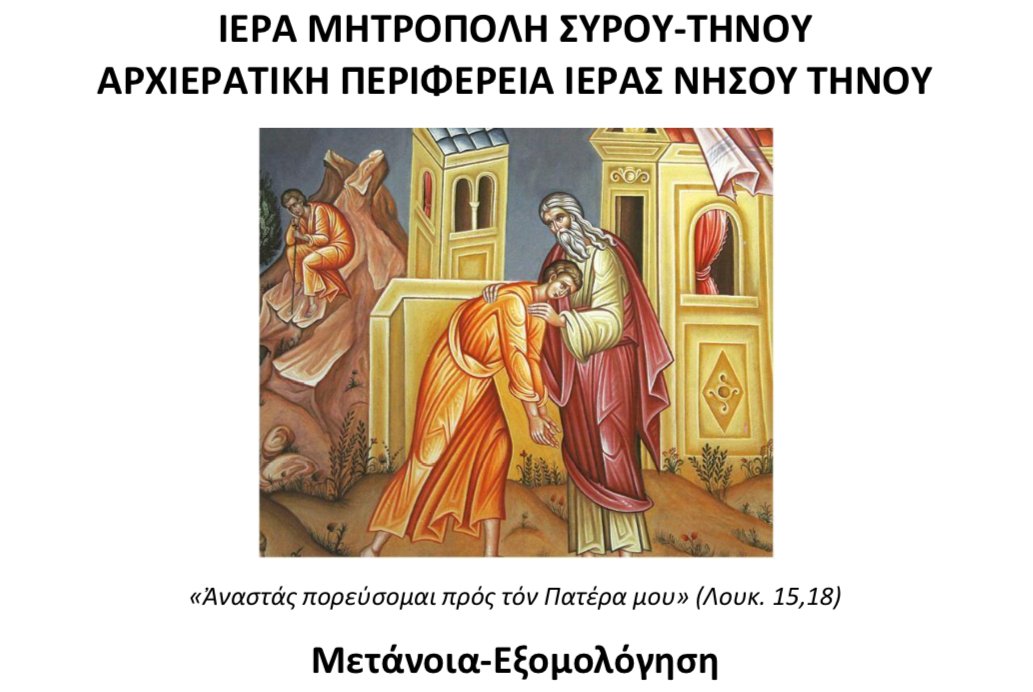 Μυστήριο της Ιεράς Εξομολογήσεως στο Εξομολογητήριο του Ιερού Ιδρύματος Ευαγγελιστρίας Τήνου, καθημερινά 9πμ-2μμ και 6μμ-9μμ, από το Σάββατο 15 Νοεμβρίου έως και την Παρασκευή 28 Νοεμβρίου, προς ψυχική και πνευματική ωφέλεια, ίαση