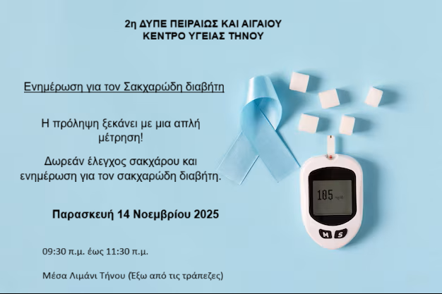 Κ.Υ. Τήνου: Παγκόσμια Ημέρα Σακχαρώδη Διαβήτη με δωρεάν μετρήσεις σακχάρου
