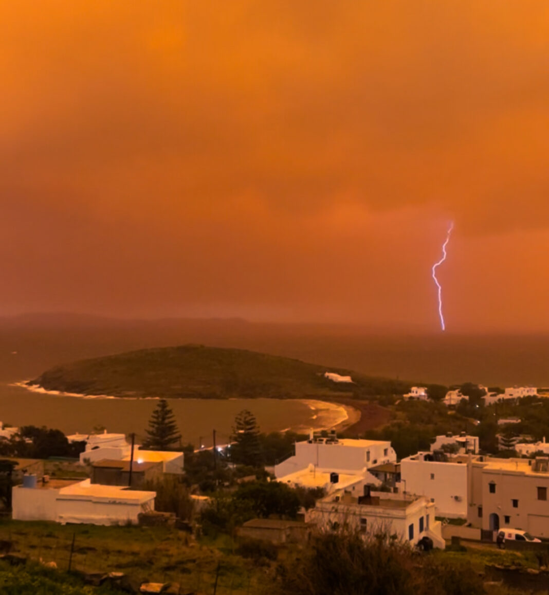 Το σπάνιο φαινόμενο της μεταφοράς Σαχαριανής σκόνης που ‘έβαψε’ το νησί, κατά τη διάρκεια της κακοκαιρίας Erminio: