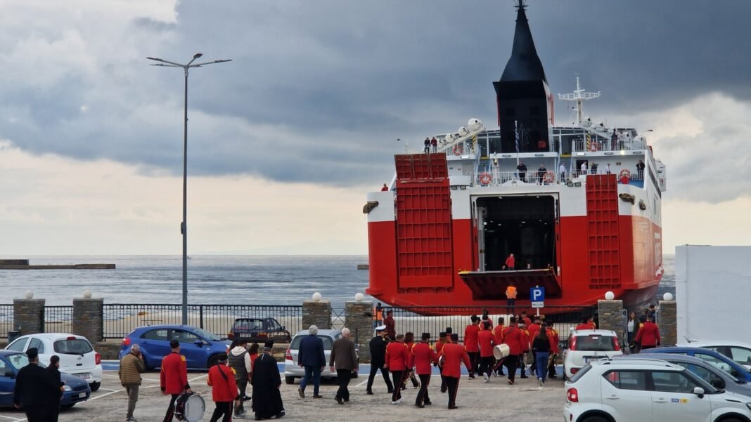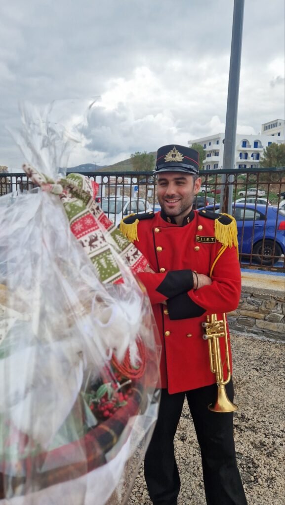 Τα κάλαντα παιάνισε η Φιλαρμονική του Πανελληνίου Ιερού Ιδρύματος Ευαγγελιστρίας Τήνου στα πλοία που έκαναν το τελευταίο τους ταξίδι για το 2023 στο νησί της Τήνου.