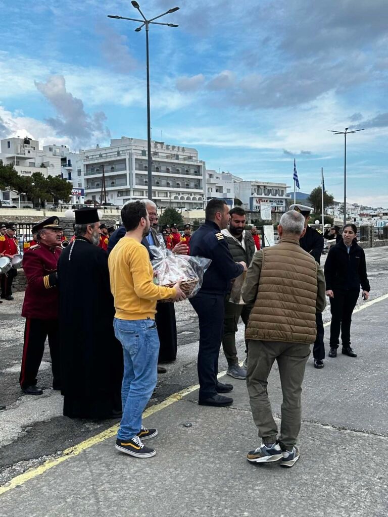Το παρών έδωσαν ο νέος Δήμαρχος Τήνου, Παναγιώτης Κροντηράς, όπου πρόσφερε σε όλα τα πλοία από ένα καλάθι με βασιλόπιτα και παραδοσιακά γλυκά, ο Αρχιερατικός Επίτροπος Τήνου π. Γεώργιος Φανερός, ο Λιμενάρχης Τήνου, κ. Ανδρέας Μάρκου, ο νέος πρόεδρος του Λιμενικού Ταμείου κ. Ευάγγελος Σημαντήρης, μέλη της νέας Δημοτικής Αρχής καθώς και ναυτικοί πράκτορες του νησιού