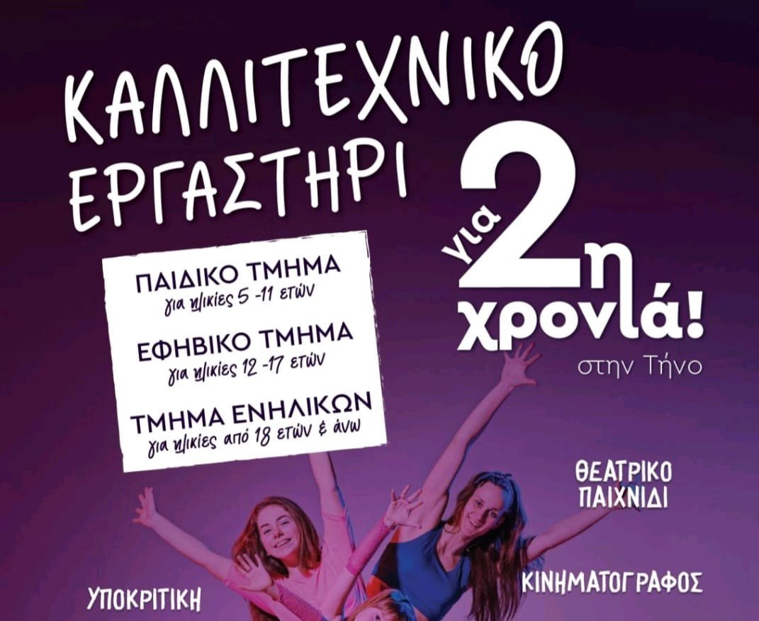 Σε συνεργασία με τον Σύλλογος Γυναικών Τήνου – Tinos Women Association το καλλιτεχνικό μας εργαστήρι ανοίγει τα πανιά του για δεύτερη χρονιά στο νησί της Τήνου & προσκαλεί μικρούς & μεγάλους να μυηθούν στην τέχνη του θεάτρου & του κινηματογράφου.