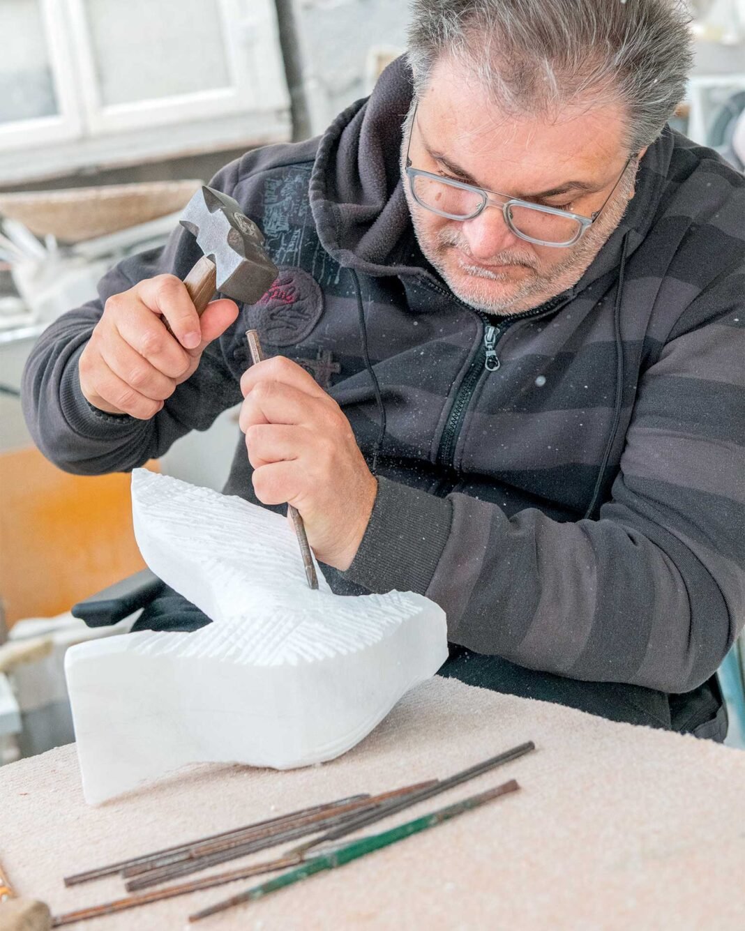 Πέμπτης γενιάς τεχνίτης, ο Πέτρος Μαρμαρινός δουλεύει την πρώτη ύλη του με υπομονή και μαστοριά