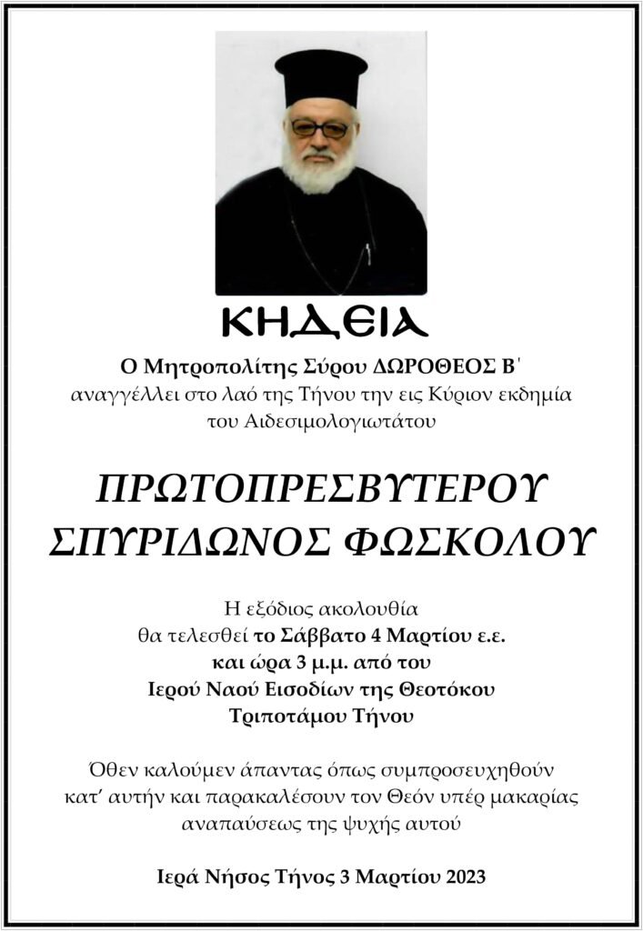 Ο Μητροπολίτης Σύρου ΔΩΡΟΘΕΟΣ Β ́