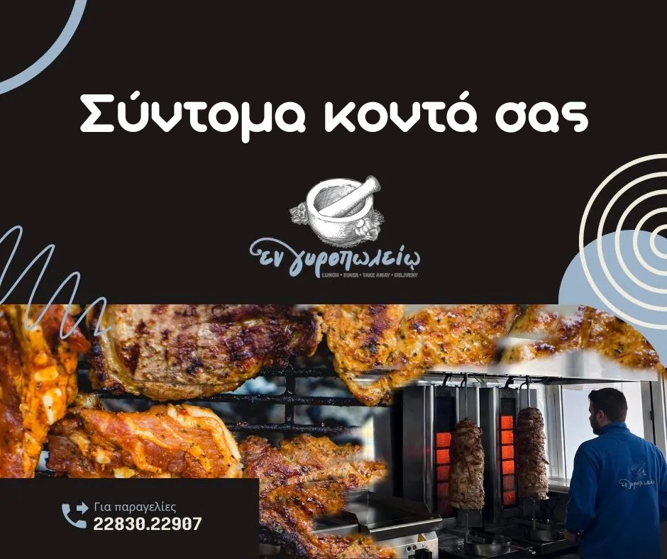 Κλειστά θα παραμείνει το κατάστημα “Εν γυροπωλείω” από την Δευτέρα 12 Φεβρουαρίου έως τις αρχές του Μαρτίου. Σας ευχαριστούμε πολύ και ανυπομονούμε να σας εξυπηρετήσουμε ξανά ανανεωμένοι!