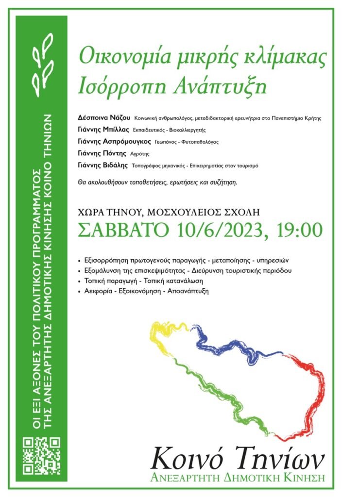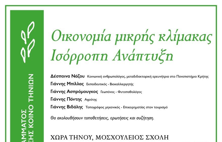 Παρουσίαση – συζήτηση για τον ένα από τους έξι άξονες του προγράμματος μας, αυτόν της Οικονομίας μικρής κλίμακας – Ισόρροπη Ανάπτυξη