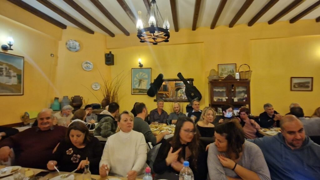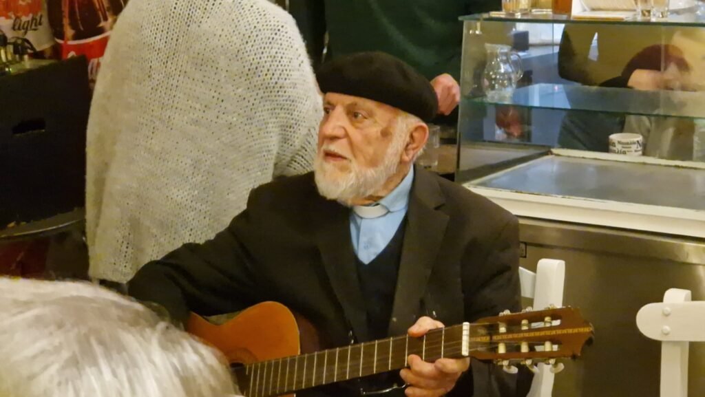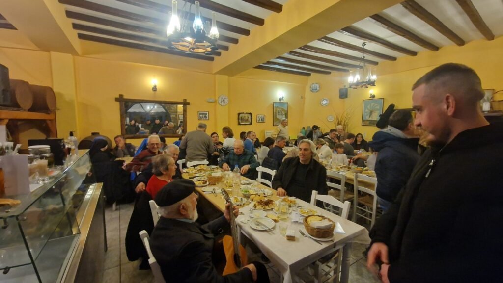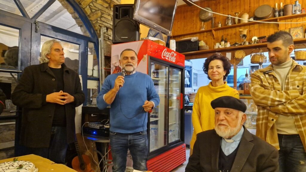 Στο τέλος, ο παπα-Νίκος πρωτην εφημέριος του χωριού εκτος απο τις ευχες του και τις ιστοριες του προσφερε με την κιθαρα του το όμορφο τραγούδι. ολο νόημα Λουκάς.