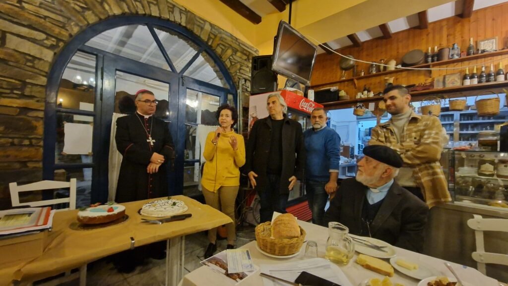 Στην πιτα παρευρέθηκε ο Σεβασμιώτατος Ιωσήφ Πριντέζης, ο εφημέριος π. Ιγνάτιος Ρέγες, ο Δήμαρχος κ. Παναγιώτης Κροντηράς, η Έπαρχος Τήνου κ. Αναστασία Δεληγιάννη-Άσπρου, αντιδήμαρχοι, η επικεφαλής της παράταξης αλλάζουμε Αναστασία Ψάλτη, εντεταλμένοι συμβουλοι, δημοτικοί σύμβουλοι και χωριανοί.