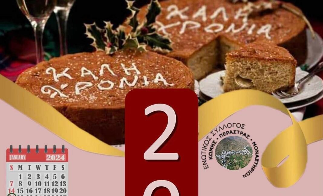 Σας προσκαλούμε να ανταμώσουμε την Κυριακή 21 Ιανουαρίου 2024 και ώρα 17:00, στην αίθουσα εκδηλώσεων της Λεοντείου Σχολής, Νειγύ 17 Άνω Πατήσια, να καλοδεχτούμε τη Νέα Χρονιά, κόβοντας την πρωτοχρονιάτικη πίτα του συλλόγου μας.