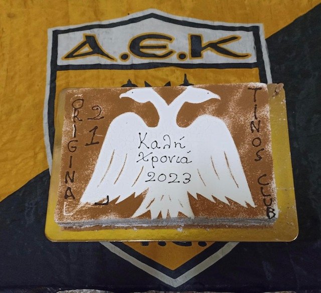 Κοπή πίτας πραγαμτοποιήθηκε στον σύνδεσμο φιλάθλων ΑΕΚ Original 21 Τήνος Club με την παρουσία του π. Νικολάου Μαραγκού και τη συμμετοχή πολλών μελών του συνδέσμου και ευχήθηκαν καλή χρονιά και καλές επιτυχίες στην ομάδα.