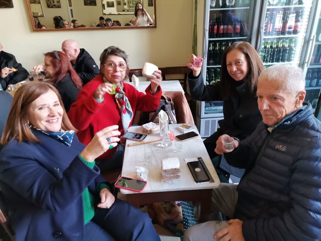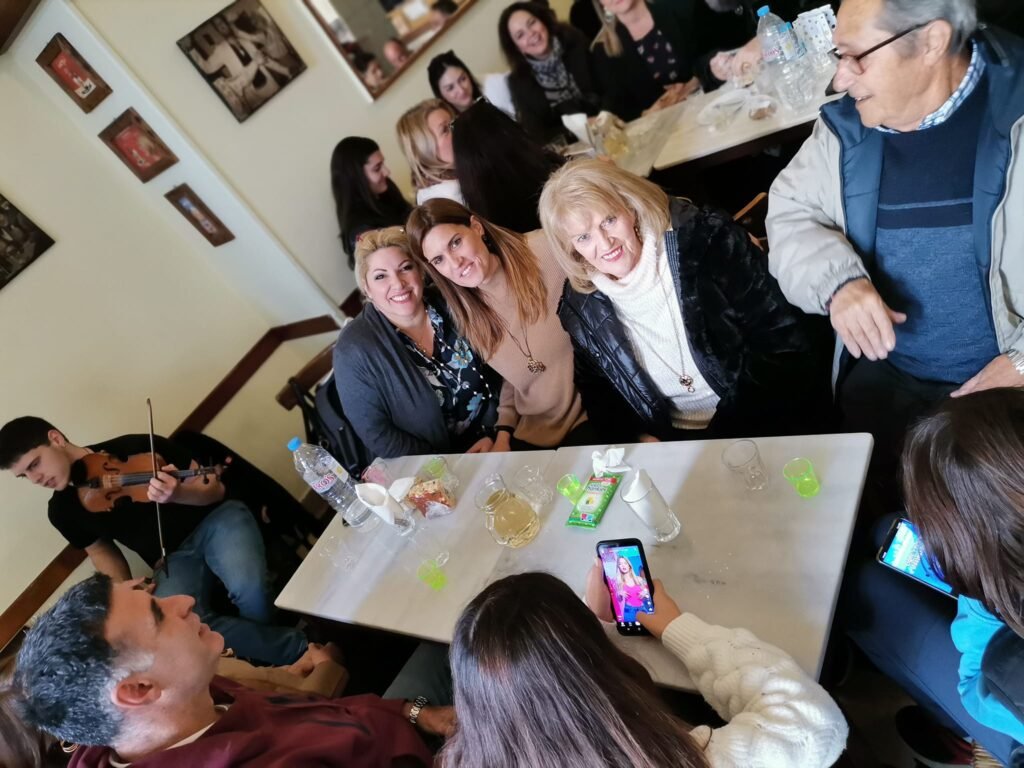 Ένα ποτήρι ρακί προσφορά του Βαγγέλη Παλαμάρη από το χωριό μας, βασιλόπιτα και στη συνέχεια μεζεδάκια όπως πάντα στο Τηνιακό, με χορό και τραγούδι.