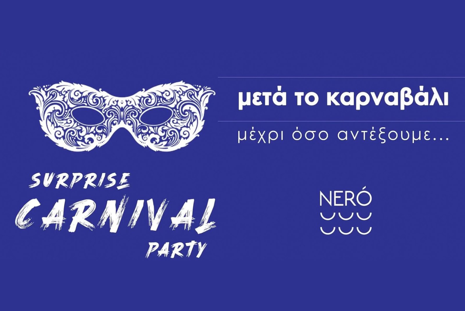 Αυτή την Κυριακή μετά το Καρναβάλι σας περιμένουμε στο Surprise Carnival Party που διοργανώνει το nerό γεμάτο εκπλήξεις και φαντασία, με guest Dj και πολλά δώρα!