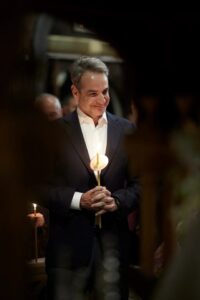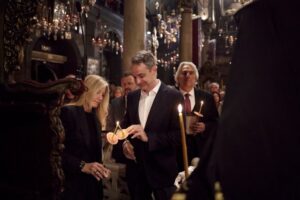 Κυριάκος Μητσοτάκης και Μαρέβα Γκραμπόφσκι στην Ακολουθία και την Περιφορά του Επιταφίου στην Τήνο – Δείτε φωτογραφίες