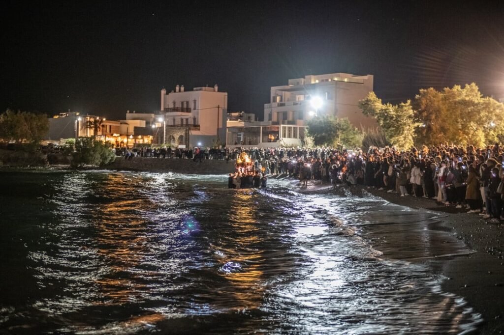 Μετά την περιφορά των Επιταφίων ένας από όλους, εκείνος του Αγίου Νικολάου και Ελευθερίου, που είναι μια ενορία, μπαίνει στη θάλασσα για όλους όσοι έχουν χαθεί σε αυτήν.