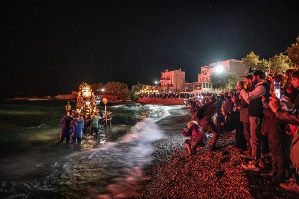 Μετά την περιφορά των Επιταφίων ένας από όλους, εκείνος του Αγίου Νικολάου και Ελευθερίου, που είναι μια ενορία, μπαίνει στη θάλασσα για όλους όσοι έχουν χαθεί σε αυτήν.
