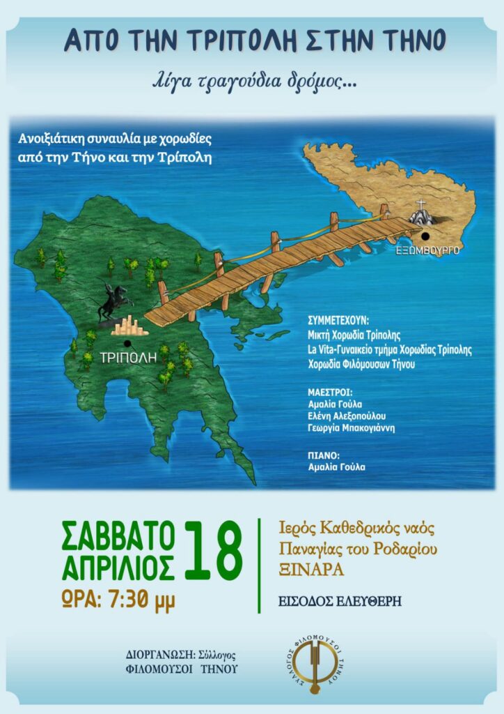 Δύο χορωδίες από την Τρίπολη και η χορωδία του Συλλόγου θα συναντηθούν σε μία κοινή συναυλία το Σάββατο, 18 Απριλίου, ώρα 7:30.