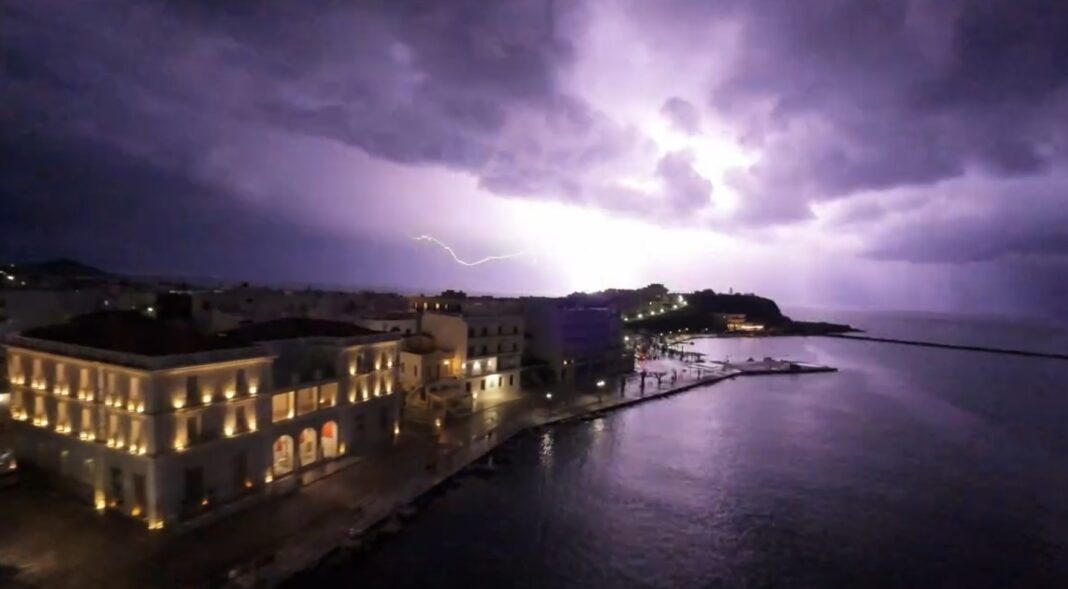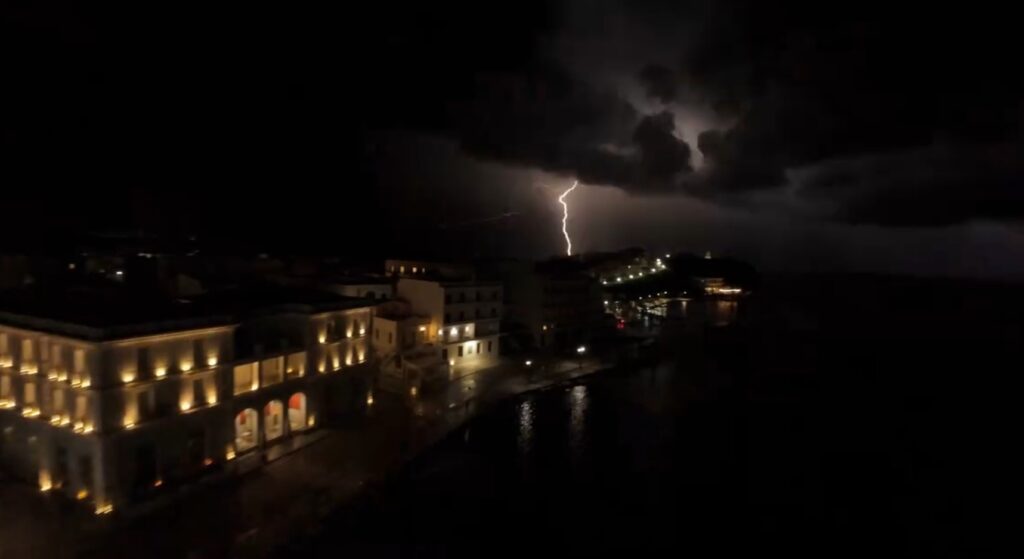 Μια Τήνος διαφορετική, σιωπηλή και επιβλητική, λίγο πριν ξεσπάσει η καταιγίδα, αποτυπώνεται σε ένα όμορφο βίντεο του Θέμη Καζιάνη. Ο ουρανός βαραίνει, το νησί μοιάζει να κρατά την ανάσα του και οι στιγμιαίες αστραπές σκίζουν το σκοτάδι, φωτίζοντας για κλάσματα δευτερολέπτου ολόκληρο το νησί.