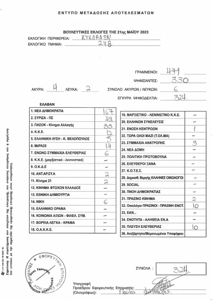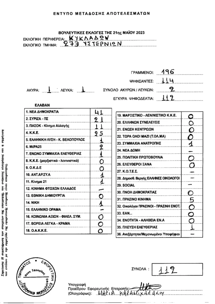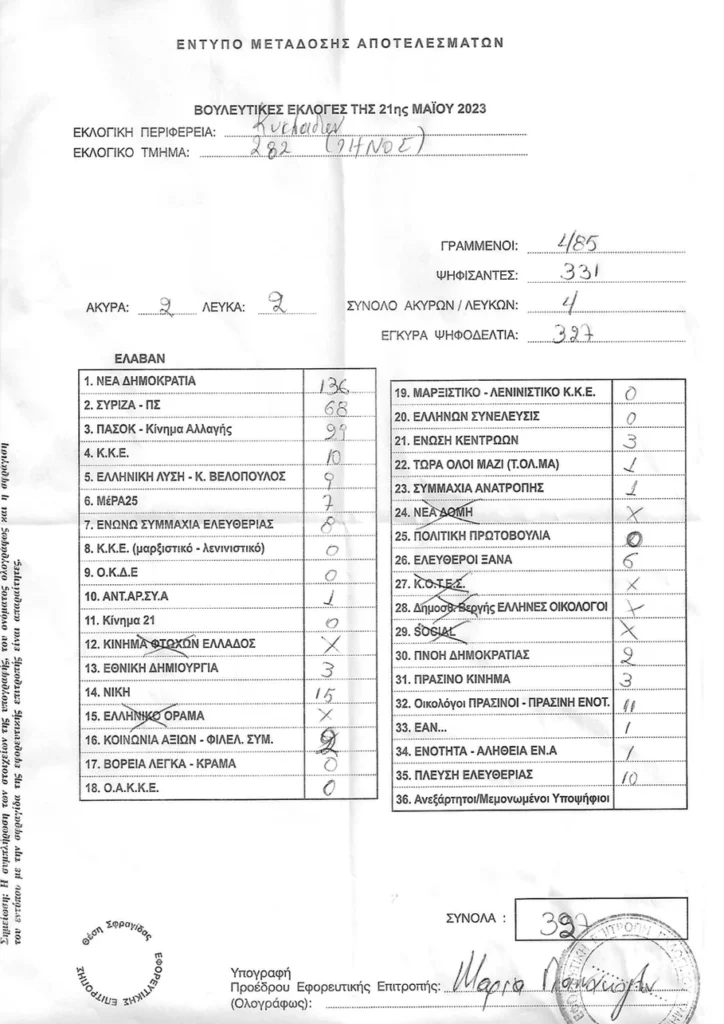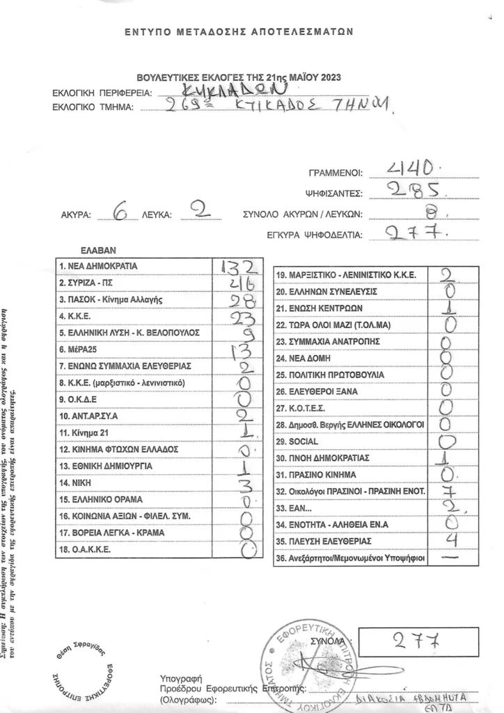 LIVE τα αποτελέσματα των βουλευτικών εκλογών 2023 στις Κυκλάδες :