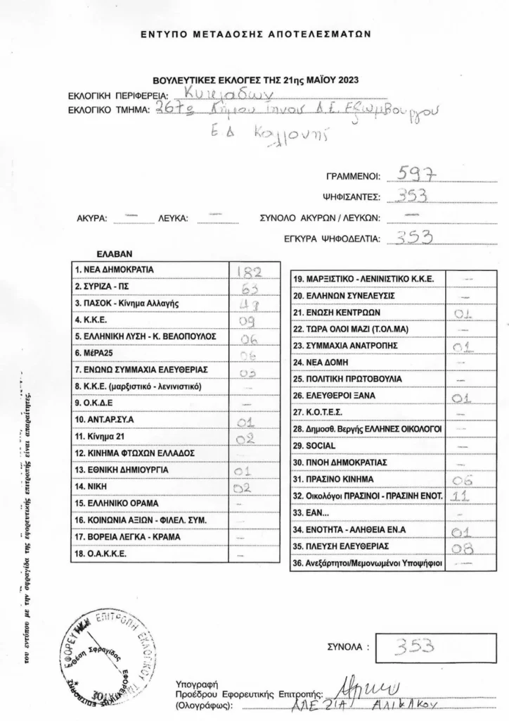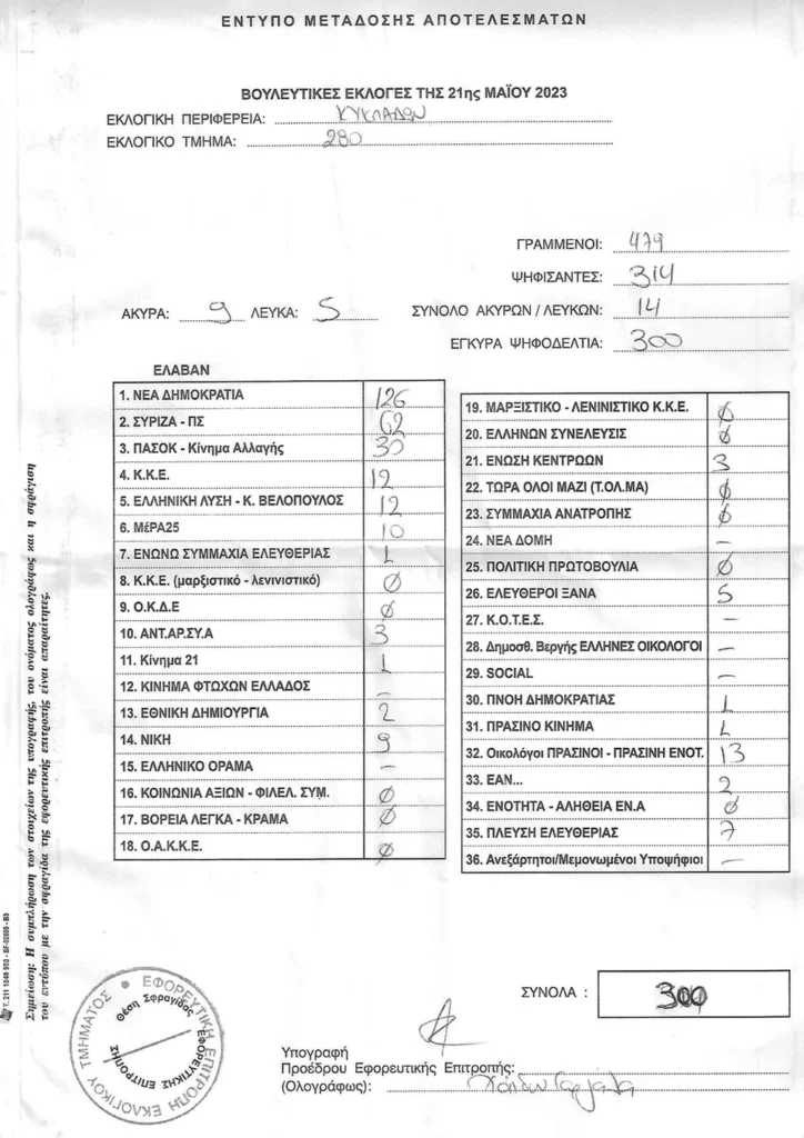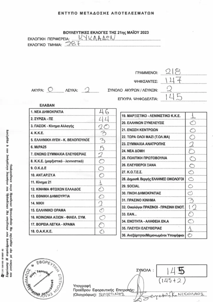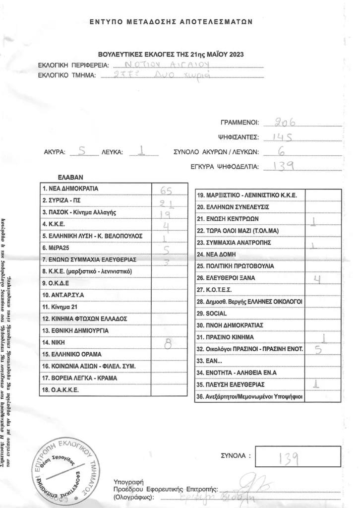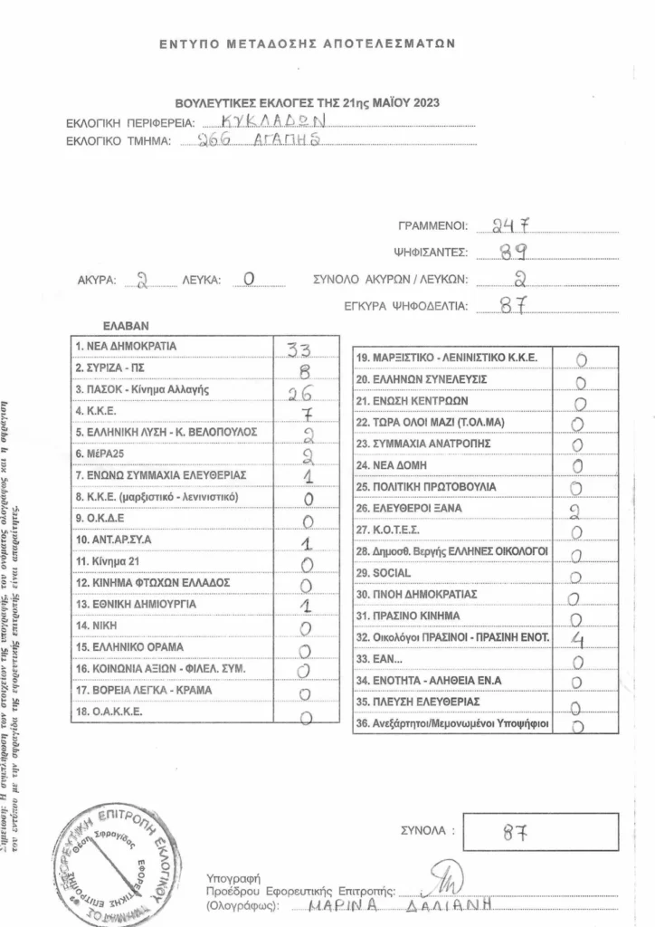 LIVE τα αποτελέσματα των βουλευτικών εκλογών 2023 στις Κυκλάδες :