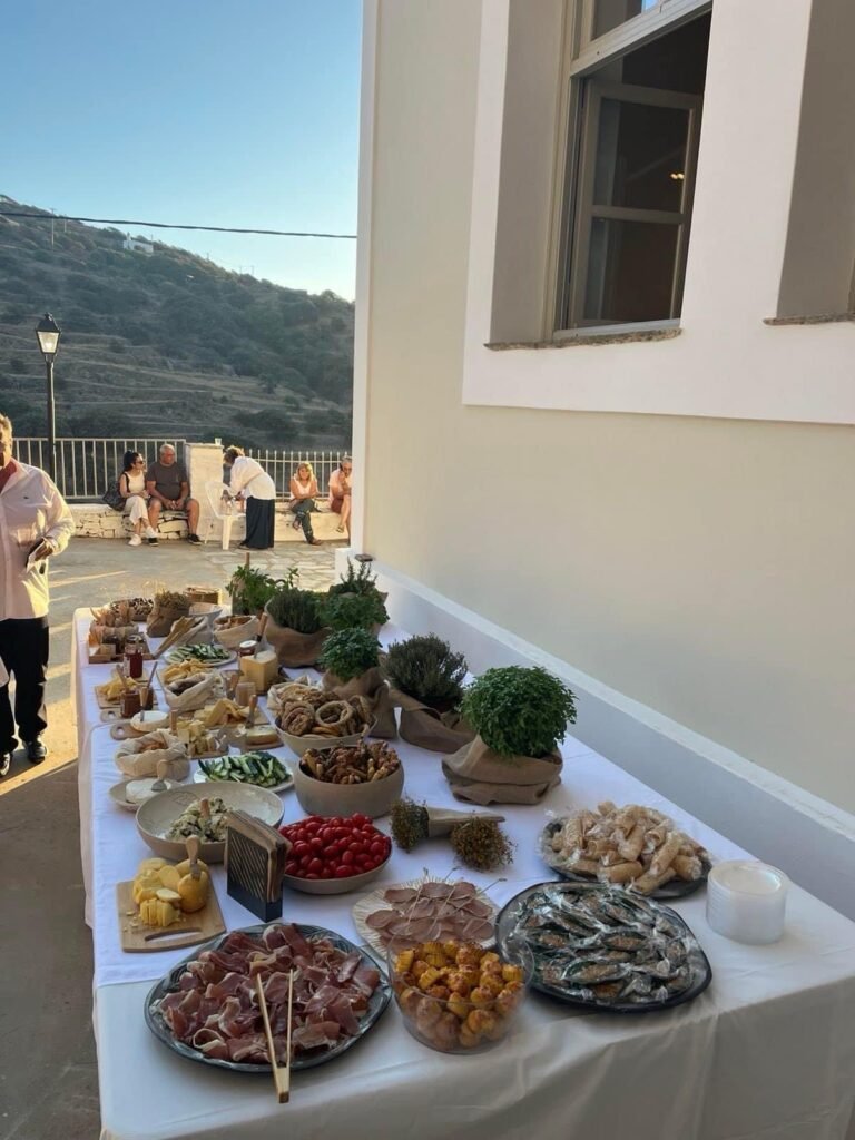 Οι οικοδεσπότες της έκθεσης προσέφεραν στους παρευρισκόμενους πλούσια τοπικά εδέσματα τυριά , αλλαντικά, κρασί, ρακί και σπιτική λεμονάδα , δημιουργώντας μια ζεστή και φιλόξενη ατμόσφαιρα.