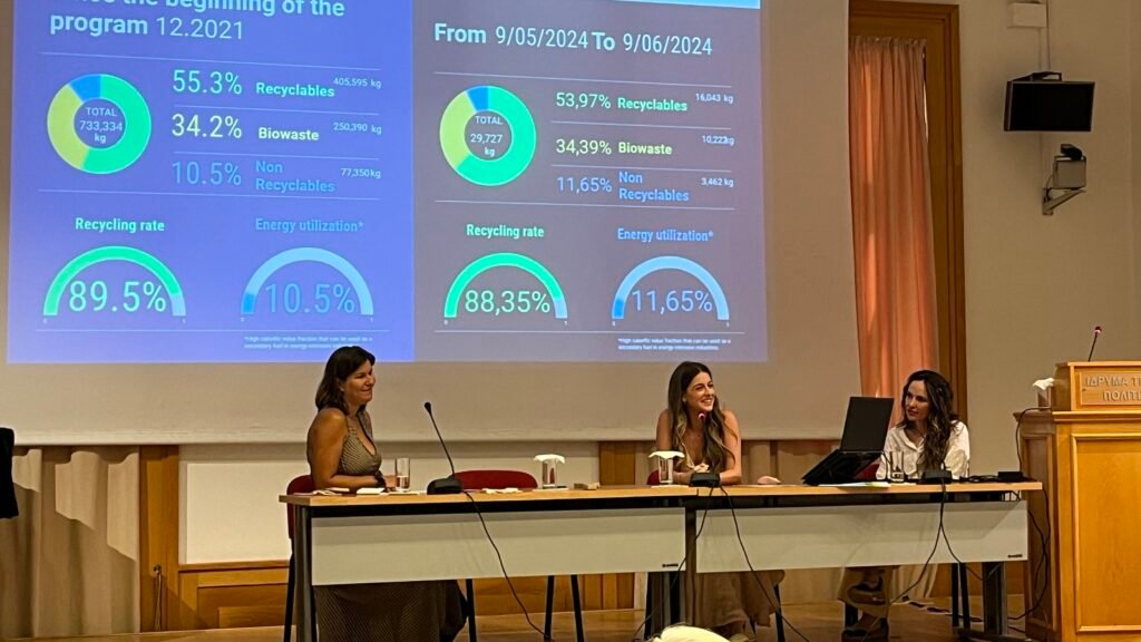 Μια νέα προσπάθεια για τη δραστική μείωση των πλαστικών απορριμμάτων, με εναλλακτικά υλικά για τις τουριστικές επιχειρήσεις, δράσεις ευαισθητοποίησης και ψηφιακή καταγραφή των ανακυκλώσιμων, ξεκίνησε στην Τήνο! Η πρωτοβουλία της ΚοινΣΕπ Καλλονή, με τίτλο “Προς μία βιώσιμη Τήνο με μηδενικά πλαστικά απόβλητα” (συνοπτικά : ZeroPlasticWaste Τήνος),  εγκαινιάστηκε προχθές, 26 Ιουνίου, με μία ανοιχτή εκδήλωση στο Ίδρυμα Τηνιακού Πολιτισμού στη Χώρα της Τήνου.  Στην εκδήλωση έδωσαν το «παρών», επιχειρηματίες, ευαισθητοποιημένοι κάτοικοι, οι Τοπικές αρχές και εκπρόσωποι συλλογικών φορέων – ενώ απηύθυνε χαιρετισμό ο Δήμαρχος Τήνου κος Παναγιώτης Κροντηράς. Χαιρετισμούς απέστειλαν ο βουλευτής Κυκλάδων κος. Φίλιππος Φόρτωμας και η Έπαρχος Τήνου κα. Αναστασία Δεληγιάννη. Το επιτυχημένο μοντέλο συνεργασίας της Τήλου που έγινε το 1ο νησί με μηδενικά απόβλητα παρουσιάστηκε από εκπρόσωπο της Polygreen και συζητήθηκε με ενδιαφέρον. Η σημασία της περιβαλλοντικής εκπαίδευσης στα σχολεία, αναπτύχθηκε από εκπρόσωπο της πλατφόρμας NoWaste21.   Εκπρόσωποι επιχειρήσεων φιλοξενίας και εστίασης μοιράστηκαν τα προβλήματα και τις προκλήσεις που αντιμετωπίζουν.