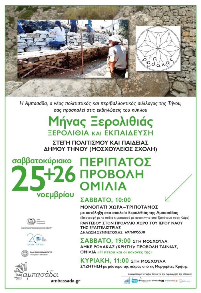 Οι εκδηλώσεις εντάσσονται στον κύκλο «Μήνας Ξερολιθιάς: Ξερολιθιά και Εκπαίδευση».