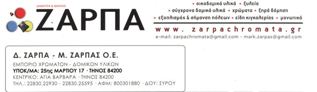Νέες Θέσεις εργασίας στην εταιρεία Ζάρπας ΟΕ στην Τήνο