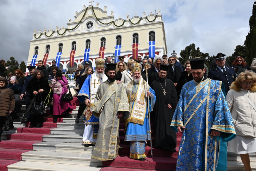 Ανάμεσα στο πολυπληθές εκκλησίασμα απ’ όλη την Ελλάδα οι οποίοι έχουν κατακλύσει το νησί ήταν η Βουλευτής των Κυκλάδων κα Αικατερίνη Μονογυιού, η Αντιπεριφερειάρχης Υγείας και Κοινωνικής Μέριμνας και Έπαρχος Τήνου, ο Δήμαρχος Τήνου, η Δημοτική Σύμβουλος εκπρόσωπος της Μείζονος Αντιπολιτεύσεως του Δήμου Τήνου, η Επικεφαλής της Ελάσσονος Αντιπολιτεύσεως, ο Λιμενάρχης Τήνου, η Διοικητής του Αστυνομικού Τμήματος, ο Διοικητής της Πυροσβεστικής Υπηρεσίας, ο Αντιπρόεδρος της Διοικούσης Επιτροπής του Ιερού Ιδρύματος Ευαγγελιστρίας, ο Πρόεδρος και τα μέλη του Δημοτικού Συμβουλίου, μέλη της Διοικούσης Επιτροπής του ΠΙΙΕΤ, μέλη της Αδελφότητος των εν Αθήναις Τηνίων, οι Πρόεδροι και τα μέλη Συλλόγων και Φορέων και πλυθείς προσκυνητών από την Ελλάδα και το Εξωτερικό.