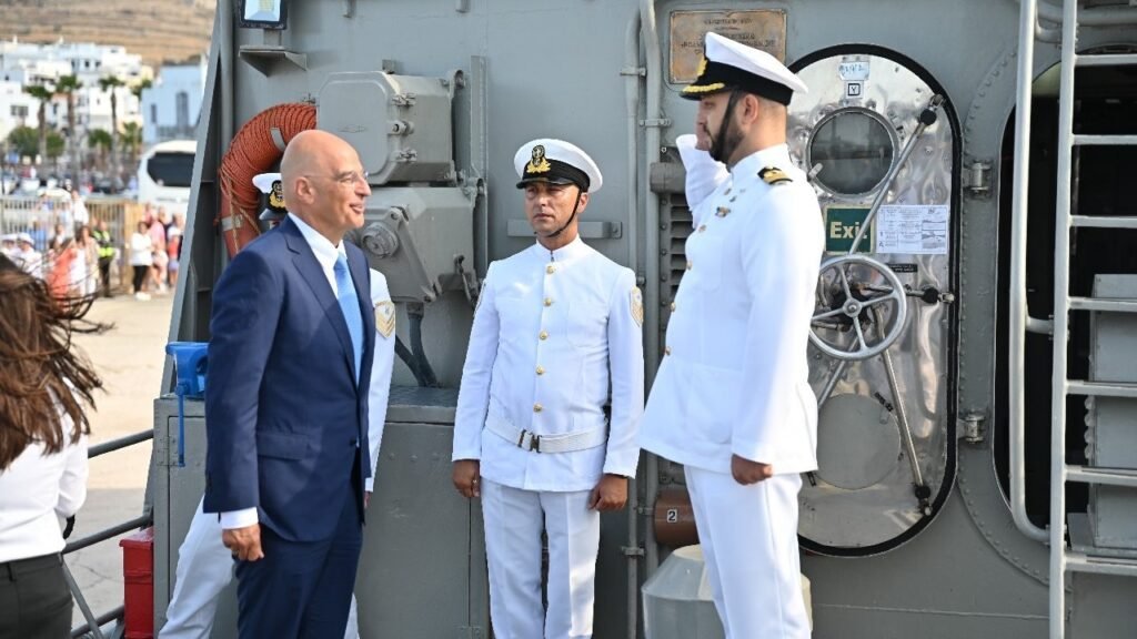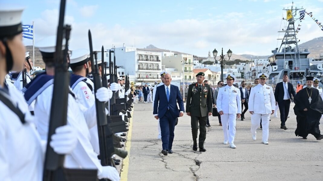 Στην Τήνο βρίσκεται ο Νίκος Δένδιας, ο οποίος έδωσε το ”παρών” στην επιμνημόσυνη δέηση επί του ΤΠΚ Μυκόνιος και στη ρίψη στεφάνου στον υγρό τάφο των πεσόντων του αντιτορπιλικού ”Έλλη”