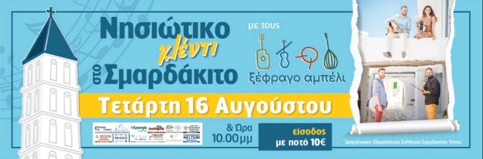 Η καθιερωμένη πλέον εκδήλωση του Συλλόγου μας έρχεται ανανεωμένη! Μαζί μας φέτος το “Ξέφραγο Αμπέλι”, ένα νεανικό συγκρότημα 4 μουσικών που παντρεύει την γνώριμη αυθεντική πλευρά της νησιώτικης παράδοσης με το νεανικό κέφι και την ζωντάνια!