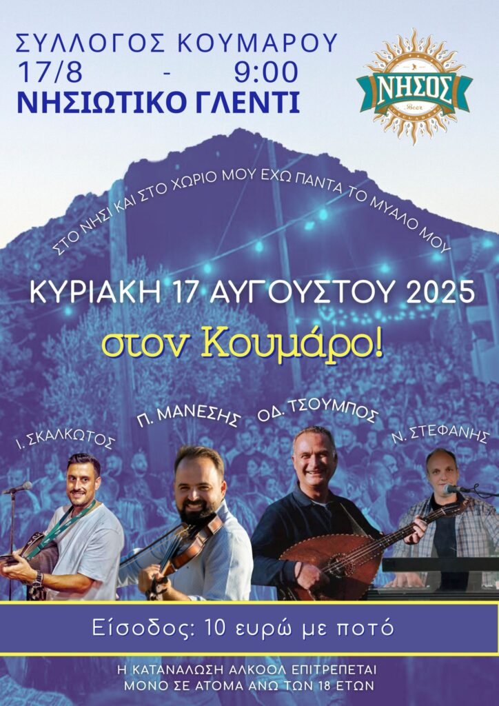 Σας περιμένουμε όλους στον Κουμάρο για να γλεντήσουμε με την ψυχή μας!