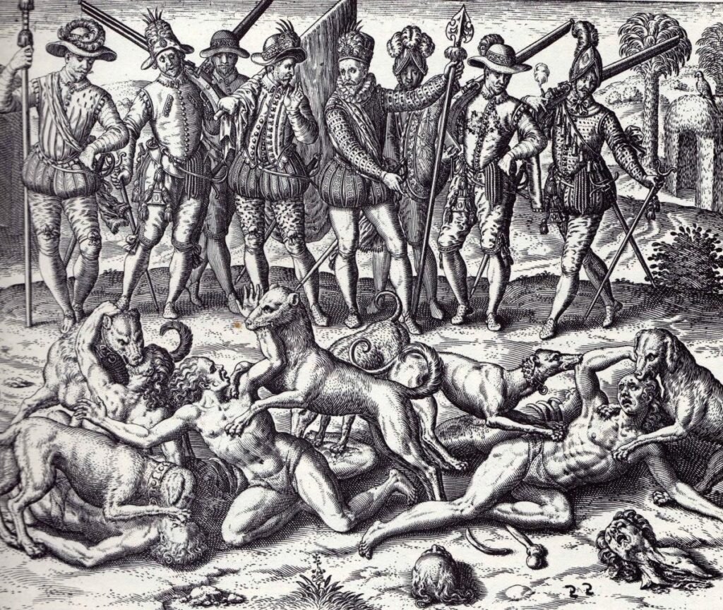 “Οι Ισπανοί σκότωσαν πλήθος από Ινδιάνους και έκοψαν τα χέρια και τη μύτη σε αναρίθμητους άντρες και γυναίκες. Άλλους τους έριξαν στα άγρια σκυλιά που τους κατέτρωγαν και τους κατακομμάτιαζαν… τους ξεκοιλιάζουν, τους περνούν από το σπαθί, μα είναι πολλοί, και πρέπει οι Ισπανοί να σταματήσουν για να ξεκουραστούν, τόσους που σκότωσαν…”